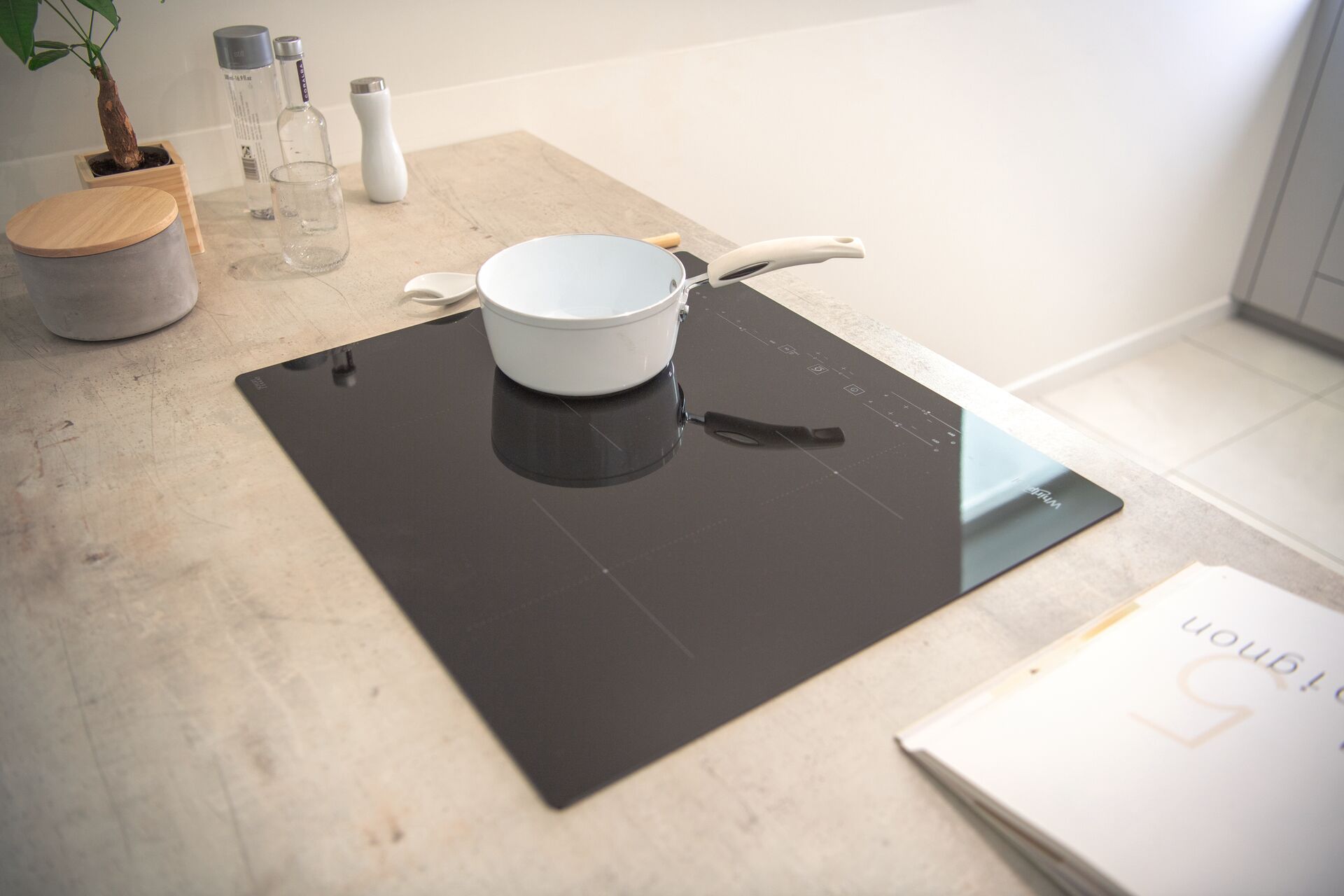 Plébiscité pour les plans de travail, le béton ciré est un matériau idéal dans une cuisine. Il se pose parfaitement par-dessus un carrelage lors d’une rénovation, et a l’avantage d’être très hygiénique : il est peu salissant et se nettoie facilement. Il est également particulièrement résistant aux chocs et étanche, même en couche peu épaisse. Autre alternative pour votre plan de travail ; le stratifié avec un décor béton.
