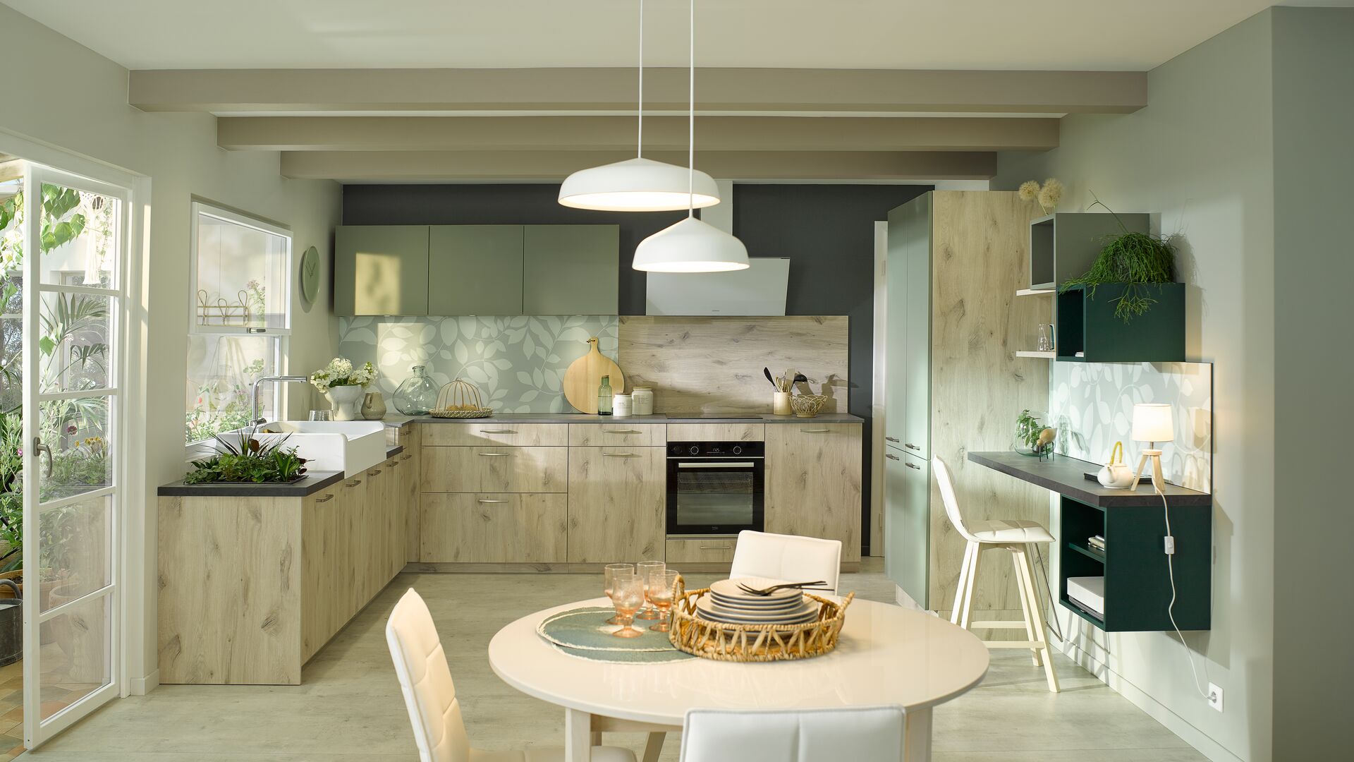 Pour célébrer l’arrivée du printemps, pensez aussi à élaborer une décoration végétale en intégrant des plantes aromatiques dans votre cuisine. L’étagère verte est pensée par Cuisinella pour accueillir vos pots d’aromatiques dans un meuble épuré à accrocher au mur. Menthe, basilic et ciboulette pourront ainsi agrémenter vos premières salades printanières avec une fraîcheur inégalée, tout en contribuant à rendre votre cuisine plus vivante, plus accueillante. Les plantes vertes ne sont pas réservées aux pièces du salon et de la salle de bains : invitez-les en cuisine pour renforcer le caractère exotique de la crédence Équateur et faire souffler sur vos plats le doux parfum de leurs fleurs !